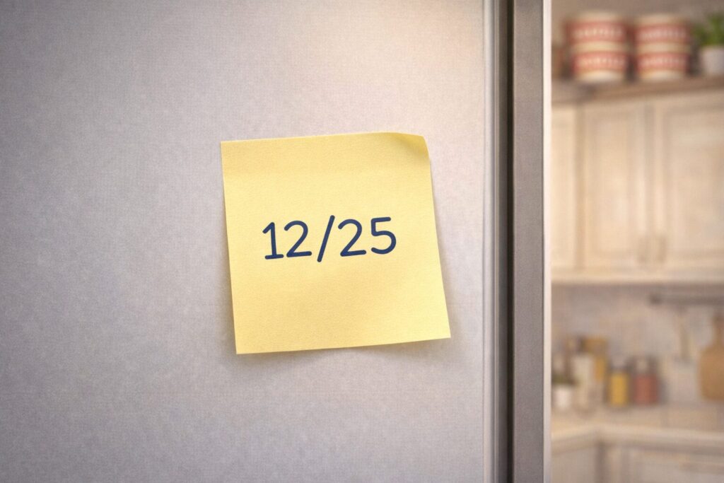② 「日付メモ」作戦:買った日に付箋を貼る