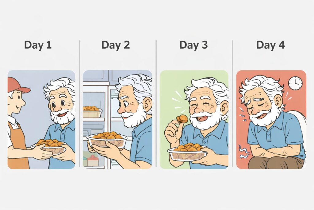 聞けば、スーパーで買った揚げ物のお惣菜を、買ってから3日目に食べた翌日に下痢。