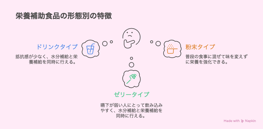 - 食欲がないときはゼリー飲料・栄養補助で代替