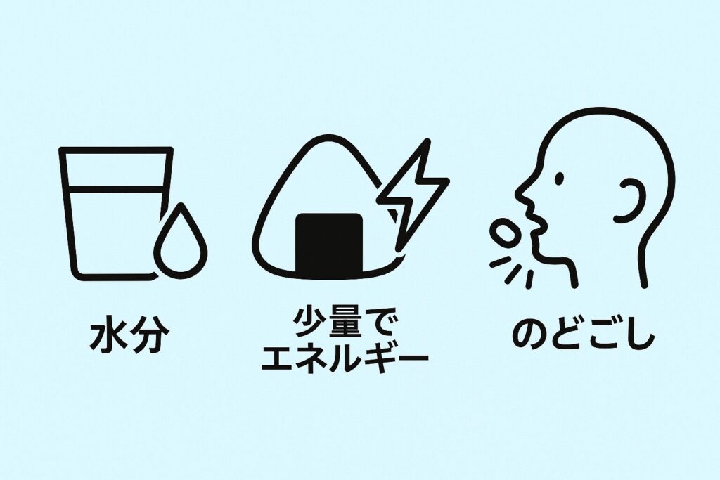 「水分」「少量でエネルギー」「のどごしのよさ」この3つを意識すると、食べ物